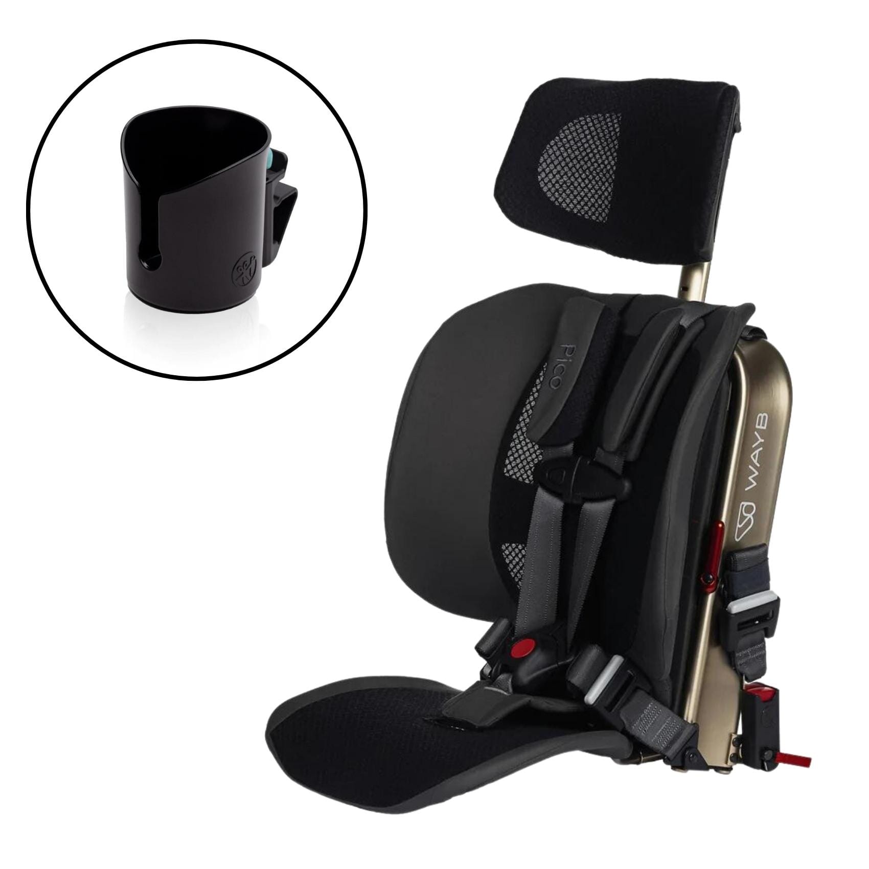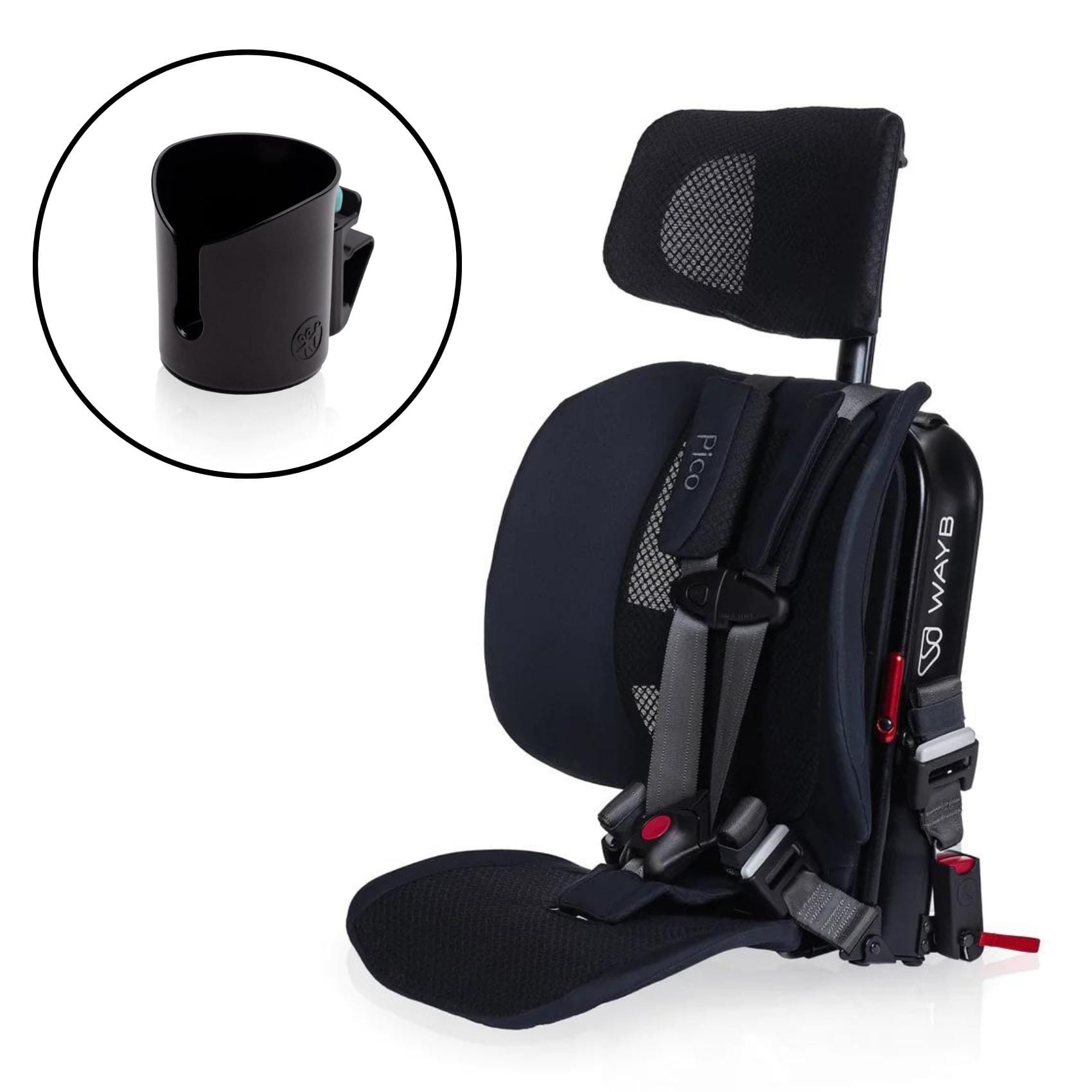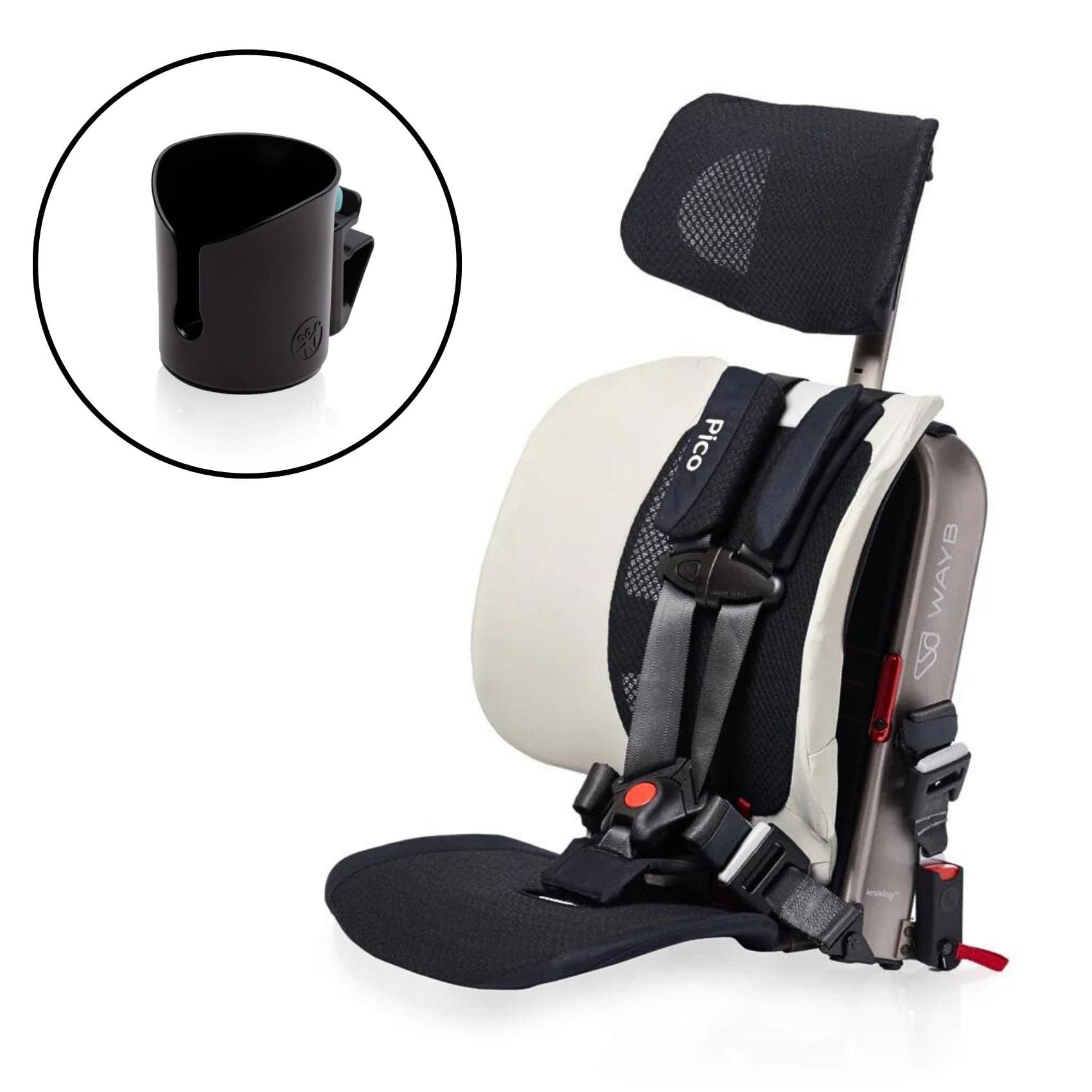 This bundle includes the WAYB Pico forward-facing car seat and the Pico cup holder.